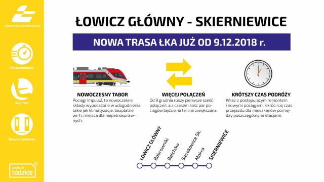 Od 9 grudnia wraz z wprowadzeniem nowego rocznego rozkładu jazdy pociągi Impuls2 będą kursowały na nowej trasie Skierniewice – Łowicz. Nowy tabor obsłuży także pozostałe połączenia ŁKA, zwłaszcza kursy w godzinach szczytu przewozowego.