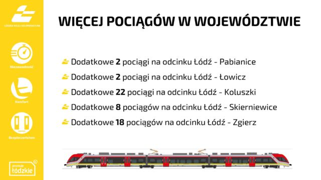 - Dodatkowe 22 pociągi na odcinku Łódź – Koluszki